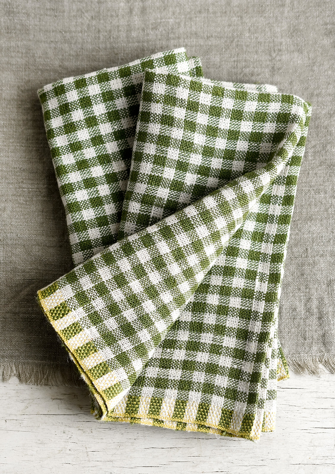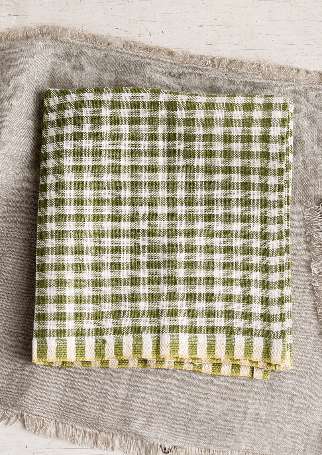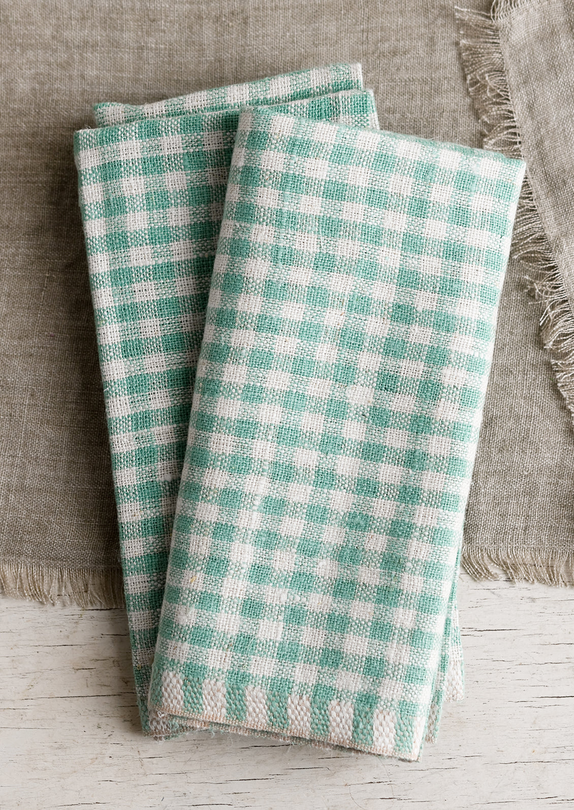 With a hand resembling antique French kitchen linens, these woven linen napkins show off a lighthearted gingham pattern, offered in two timeless hues.